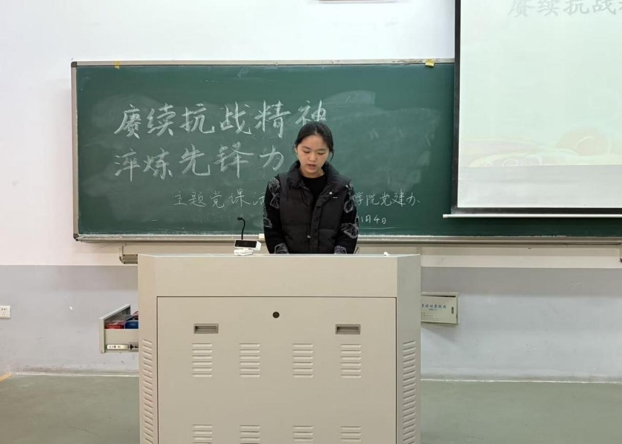 学生党支部于11月4日中午在龙子湖校区繁塔楼E107开展了以“赓续抗战精神,淬炼先锋力量”为主题的党课活动。