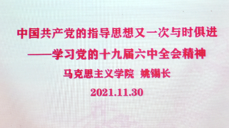 马克思主义学院姚锡长教授按照时间顺序开展第二讲《中国共产党的指导思想》。他介绍了中国共产党指导思想的产生与重要性,进而指出了中国共产党指导思想是以马列主义、毛泽东思想、邓小平理论、三个代表重要思想,他强调我们党的指导思想既一脉相承又与时俱进,在不同的时期有着不同的历史特点,我们既要传承又要紧跟时代发展,不断创新。