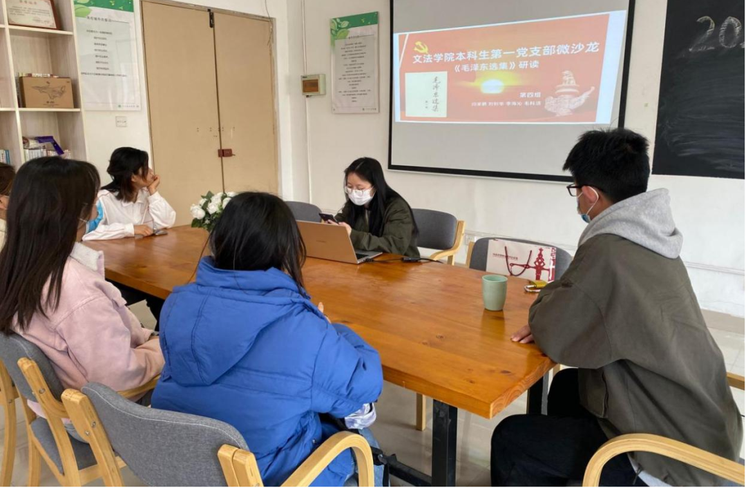 部分党员结合毛选和当前社会热点问题,分析国际国内局势对当代青年学子当前学习方向和未来职业规划的影响,大家纷纷表示,要学好专业知识,坚定理想信念,让青春在祖国最需要的地方绽放。
