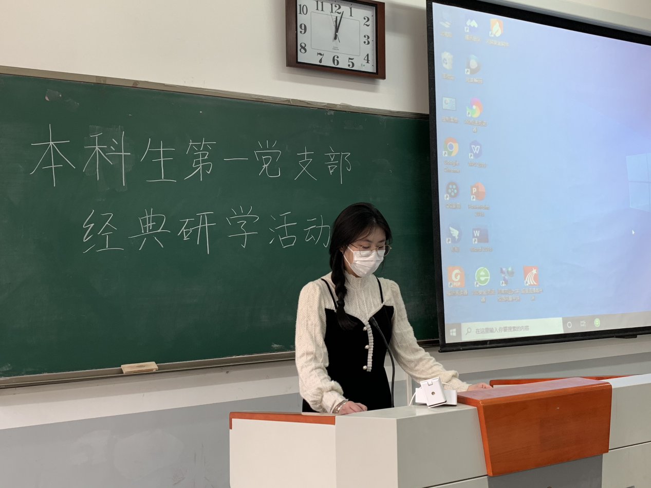 组织本科生第一党支部全体党员于繁塔楼C105开展经典研读第四期活动。