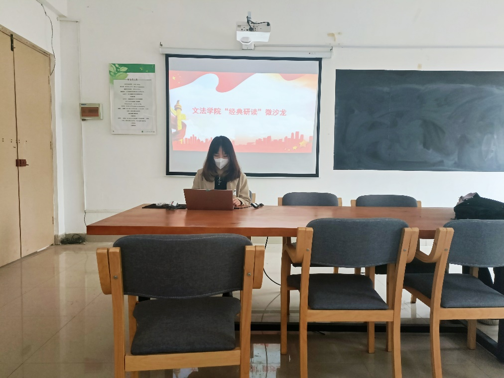 组织本科生第一党支部部分党员于紫竹303瑞萍工作室开展经典研读第五期活动。