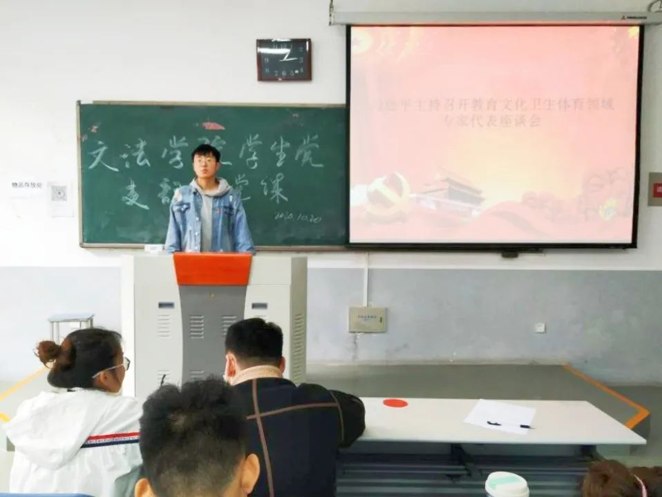学生党2020年10月20日下午在龙子湖校区繁塔楼C101教室开展了以学生党员代表微党课分享为主要形式的党日活动。