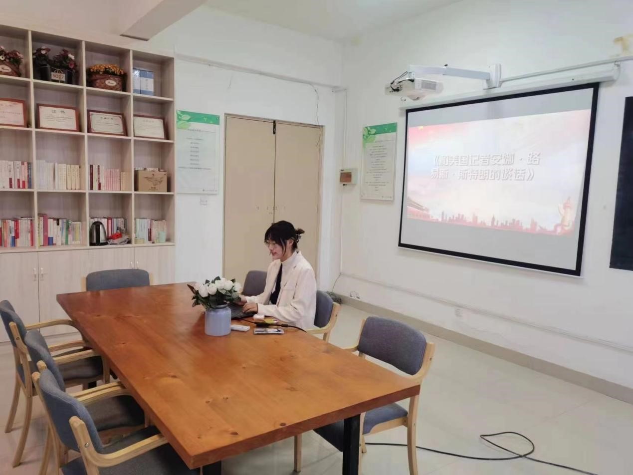 学生党员顾沁薇向大家分享了《和美国记者安娜•路易斯•斯特朗的谈话》这篇文章,在与美国记者的谈话中,毛泽东提出了“一切反动派都是纸老虎”的著名论断。顾沁薇同志对该篇文章的背景、主要内容及其意义进行了阐释,并提出,作为学生党员要坚定政治立场,服务大局,做好党员的先锋模范作用。