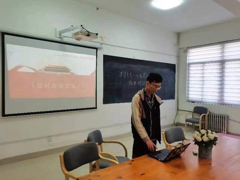 学生党员程佳豪结合自己的感悟分享了毛泽东同志的《反对自由主义》一文。从自由主义的来源、什么是自由主义和自由主义的表现三个方面,有条理、分层次的概括了自由主义的种种危害,并以此为镜,反思作为党员,我们应该拥有的品质和行动,要时刻督促自己,不忘初心,牢记使命。