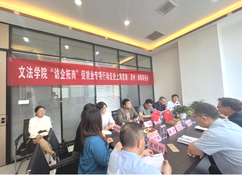 法律系到上海君澜(郑州)律师事务所开展访企拓岗促就业活动,举行学习贯彻“习近平法治思想”主题党日活动。学院副院长杨红朝,法律系教工党支部书记、系主任韩宁,学院教学秘书徐轶博,法律系副主任赵菊敏,党政办公室副主任杨柳青,法律系教师代表刘广林、王可利、贾秋宇等,上海君澜(郑州)律师事务所党支部书记杨新勤,律所执行主任彭逸豪,执业律师赵国栋、曹秋香等参与活动。