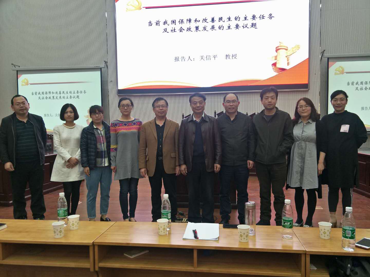 2018年3月31日下午,民政部专家决策咨询委员会委员、南开大学社会建设与管理研究院院长、国家社科基金项目与会评审专家关信平教授应邀来91porn 做了题为“当前我国保障和改善民生的主要任务及相关社会政策分析”的学术报告。91porn 院长王晓勇教授主持并对报告做了精彩点评,社会学系主任李伟及全体教师和社会工作专业本科生聆听了本场报告。