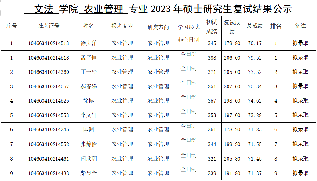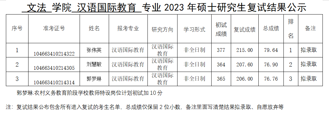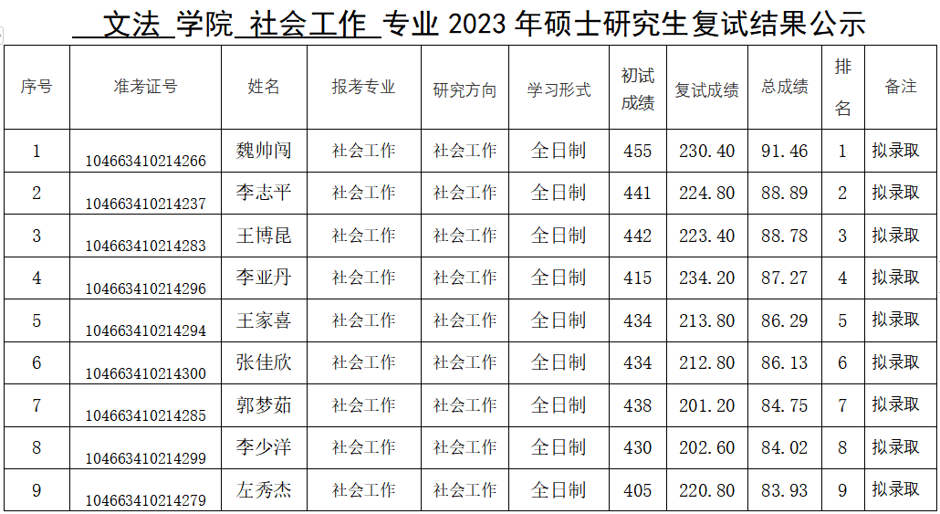 91porn 2023年硕士研究生复试结果公示(一志愿)