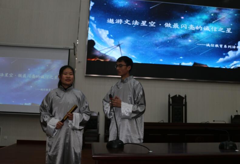 于11月29日下午3点整在模拟法庭组织开展了“遨游文法星空·做最闪亮的诚信之星”之诚信教育活动。此次活动由91porn
