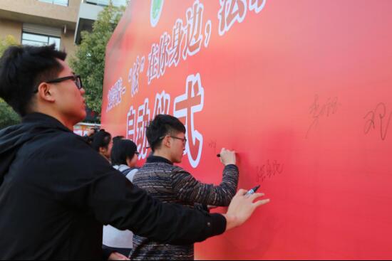 启动仪式结束后各位领导、老师、同学们在活动展板上签名留念,彰显出91porn