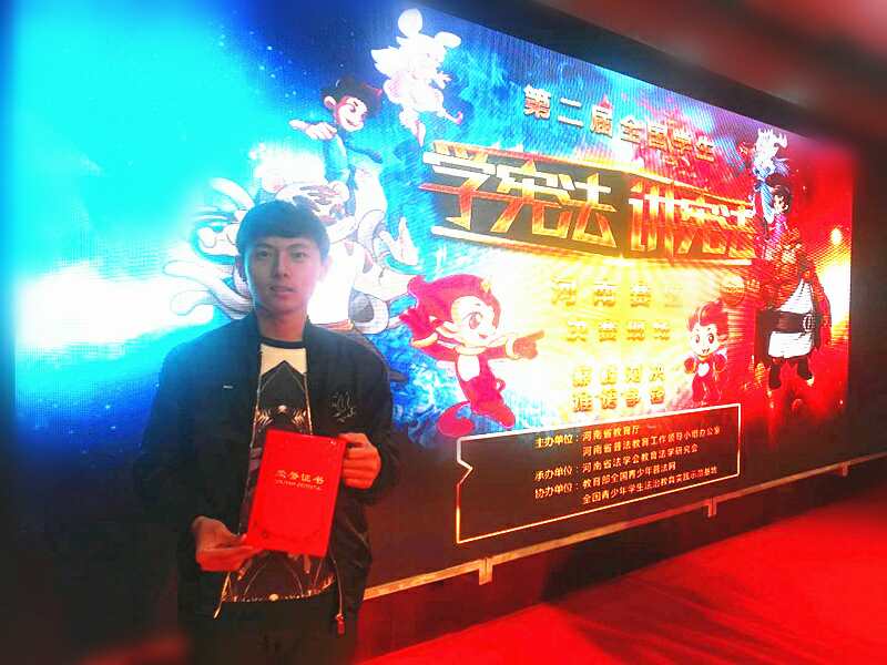 91porn 积极响应、广泛动员学子参与其中,并进行了充分的前期准备。91porn 学子卢天从276名优秀选手中脱颖而出,在围绕“学宪法、讲宪法”主题下进行了激情洋溢的演讲,时而激情昂扬,时而理性说法,声情并茂,抑扬顿挫的精彩演讲不时获得观众和评委老师的热烈掌声。夺得了省级二等奖的佳绩。