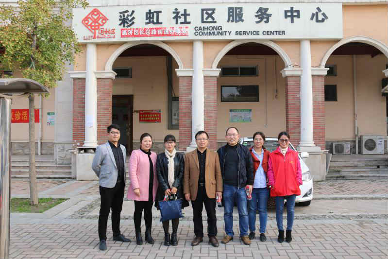 代表与惠济区民政局、颐和社会工作服务中心的领导、工作人员进行了愉快、深入的交谈,并在惠济区民政局社工科科长刘子僅、颐和社会工作服务中心理事长王红、负责人王飞等人的陪同下,兴致勃勃地参观了惠济区彩虹社区服务中心建设情况,双方表达了进一步合作的良好愿望。