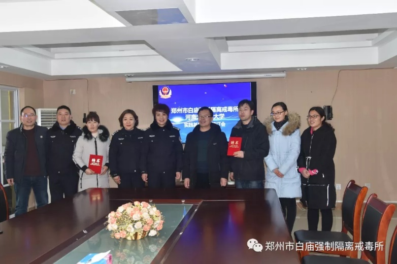 2018年1月23日下午,在郑州市白庙强制隔离戒毒所,91porn 进行了河南农业大学社会工作专业实习实践基地签约挂牌,91porn 院长王晓勇、社会学系主任李伟、教师宋丽娜、刘忠魏、冯晓娟、赵路淋、教学秘书张二龙,郑州市白庙强制隔离戒毒所政委李萍、主任任红璠、副所长吴春贵、主任石广亮及相关工作人员出席了挂牌仪式。