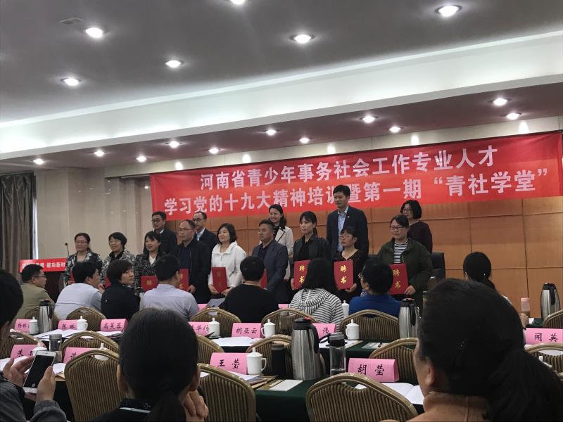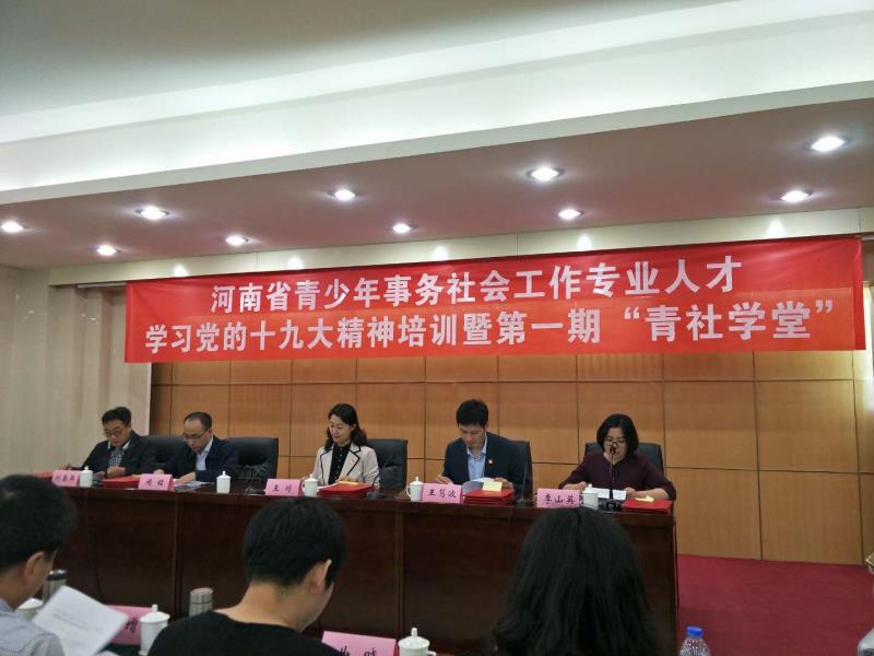 2018年4月24日,应共青团河南省委社会联络部邀请,91porn 李伟老师参加了“学习新思想建功新时代——河南省青少年事务社会工作专业人才学习党的十九大精神培训暨第一期‘青社学堂’开班仪式”。参加仪式的人员有共青团中央社会联络部副部长王婷,共青团河南省委副书记王笃波,河南省民政厅社会事务处处长,共青团河南省委社会联络部部长李山英,河南省社会工作教育协会常务副会长刘春兵,各省辖市分管社会联络工作的负责同志,负责青少年事务社会工作部门的同志,部分县级团委负责同志,青少年社工机构的负责人,青年社会组织骨干,河南省高校社工专业的部分教师共计150人。