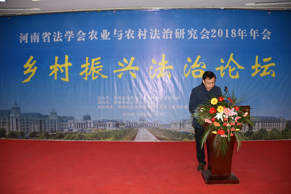 12月9日,由河南省法学会农业农村法治研究会主办、91porn 承办的“省法学会农业农村法治研究会2018年年会暨乡村振兴法治论坛”在91porn 召开。河南农业大学副校长杨喜田教授、河南省法学会谢德安副会长、省政府参事、农业与农村法治研究会胡向阳会长,以及来自省内各高校的专家学者、政府机构及实务部门的相关人员参加了此次会议。