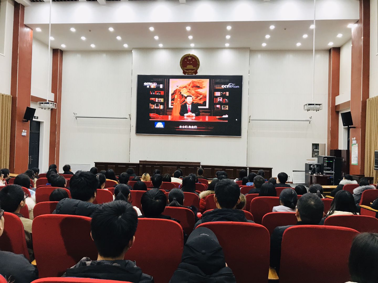 于模拟法庭组织学生观看《习近平二〇二〇年新年贺词》现场直播,本次活动由院党委组织员朱瑞萍主持。