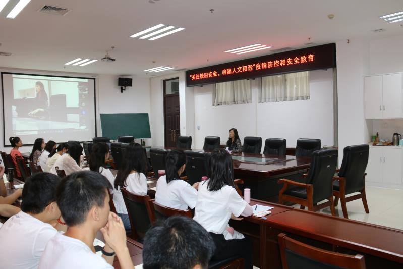 朱瑞萍作“关注校园安全,构建人文和谐”疫情防控和安全教育。她强调学生在校园内外都应提升自我安全意识,从出行安全、宿舍安全、意识形态安全三个方面做出详细说明。