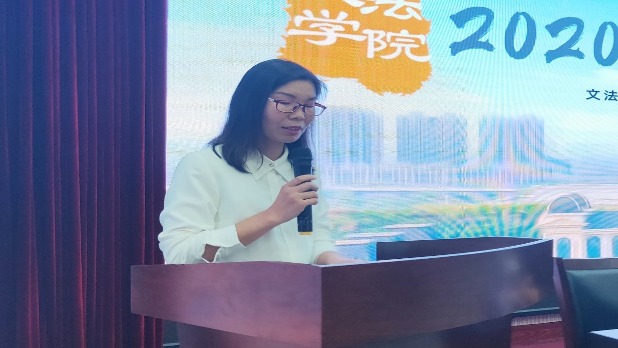 2020级本科生新生代表社会工作专业陈桂东及研究生新生代表农业管理专业姜泽臻分别发言,他们对接下来的大学生活充满希冀,并表示作为文法人应当不忘初心、坚守本分,秉承校训砥砺前行,共同创建美好文法。