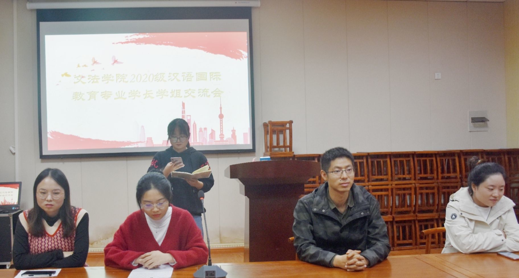 法学专业、行政管理专业、社会工作专业和汉语国际教育专业分别召开了2020级学长学姐交流会,各专业大四优秀学生代表发言,2020级全体新生与会聆听。