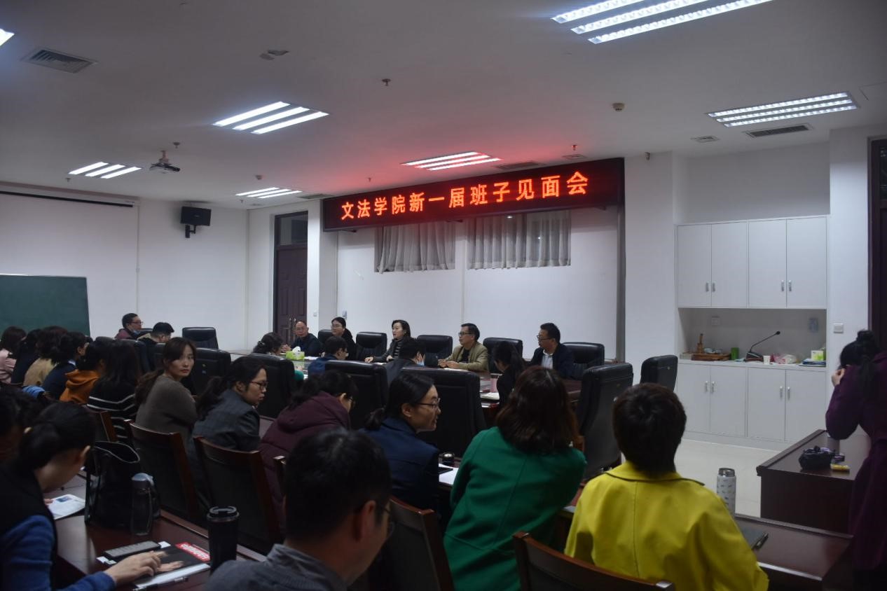 于龙子湖校区教学楼A310院会议室召开新一届班子见面会,学院新一届领导班子成员和全体教职工参会,院党委书记牛娟主持会议。