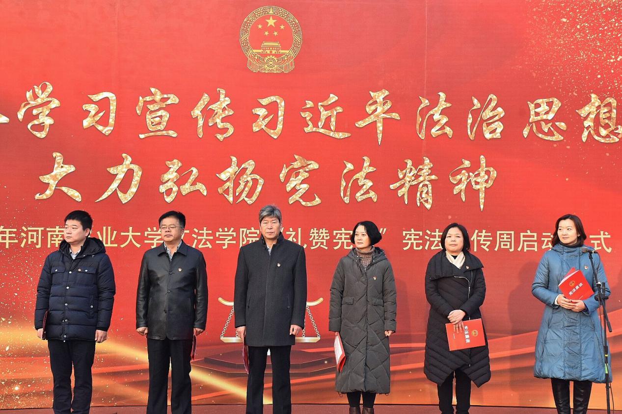 于龙子湖校区田径场举办了以“深入学习宣传习近平法治思想 大力弘扬宪法精神”为主题的“礼赞宪法”宪法宣传周启动仪式。副校长杨喜田出席启动仪式。校党委宣传部、学工部、法规办、校团委以及91porn