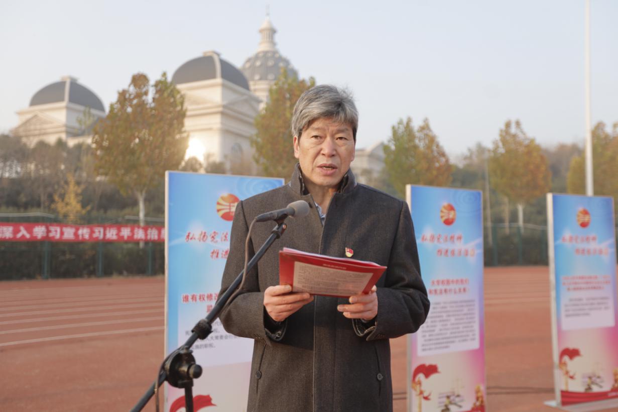 杨喜田在启动仪式上做重要讲话并宣布宪法宣传周启动。他指出,举行此次“宪法宣传周”活动启动仪式,是91porn 深入学习贯彻党的十九届五中全会精神,全面推动全校师生深入学习宣传宪法,弘扬宪法精神,维护宪法权威,营造法治氛围的重要举措。他对91porn 在建设中国特色社会主义法治国家的伟大进程中开展的各项宣传教育活动给予高度的肯定。他强调,全校师生要孜孜不倦,勤学苦练,争做宪法的积极学习者;胸膺法治,心敬规章,勇做宪法的忠实守卫者;笃行博思,积极有为,共做宪法的有力宣传者。