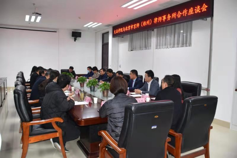 与京师(郑州)律师事务所在学生培养、人才交流、业务探讨与合作等方面进行了深入洽谈。院长王晓勇、副院长杨红朝、团委书记朱瑞萍以及法律系全体教师参加了座谈。座谈会由杨红朝主持。
