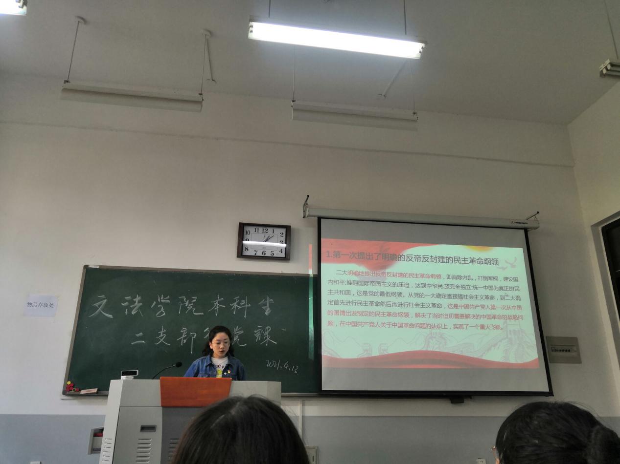 本科生党支部于2021年4月13日下午于龙子湖校区繁塔楼C103举办“灯塔”微党课专题活动,深入学习“中共二大”的历史背景和意义。