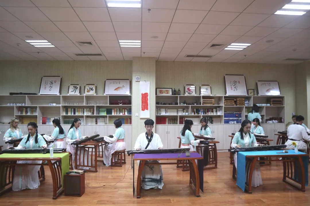 汇报表演从古筝独奏《高山流水》开篇,筝鸣袅袅,琴瑟翩翩,从容典雅,引人入胜。学生琴歌合奏《鸿雁》、《秋风词》,时而婉转,时而高扬,琴声阵阵,引人无限遐思。青青子衿,悠悠我心,琴歌合奏《子衿》将思念之情通过琴声娓娓道来。汉服表演也为现场观众带来一场视听盛宴。学生通过华丽的服饰、曼妙的舞姿、优雅的礼仪展示出来中华优秀传统文化的自信之美。