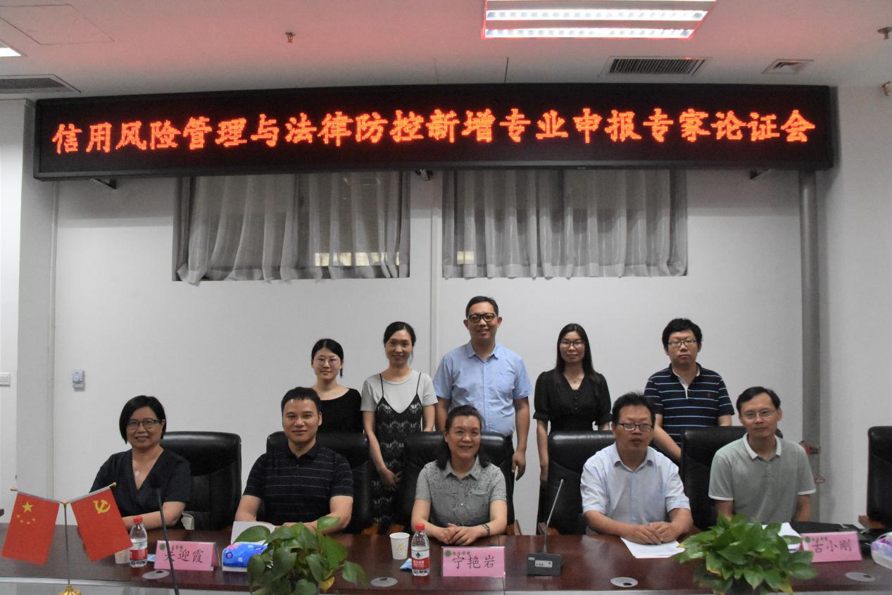 论证信用风险管理与法律防控新增专业申报。校政策法规办公室副主任张帅梁、学院院长王晓勇、副院长杨红朝及信用风险管理与法律防控新增专业申报撰写组成员参加论证会。