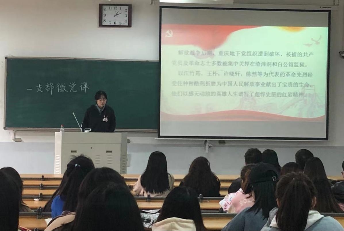组织本科生第一党支部全体党员于E217开展“红岩精神”微党课活动。