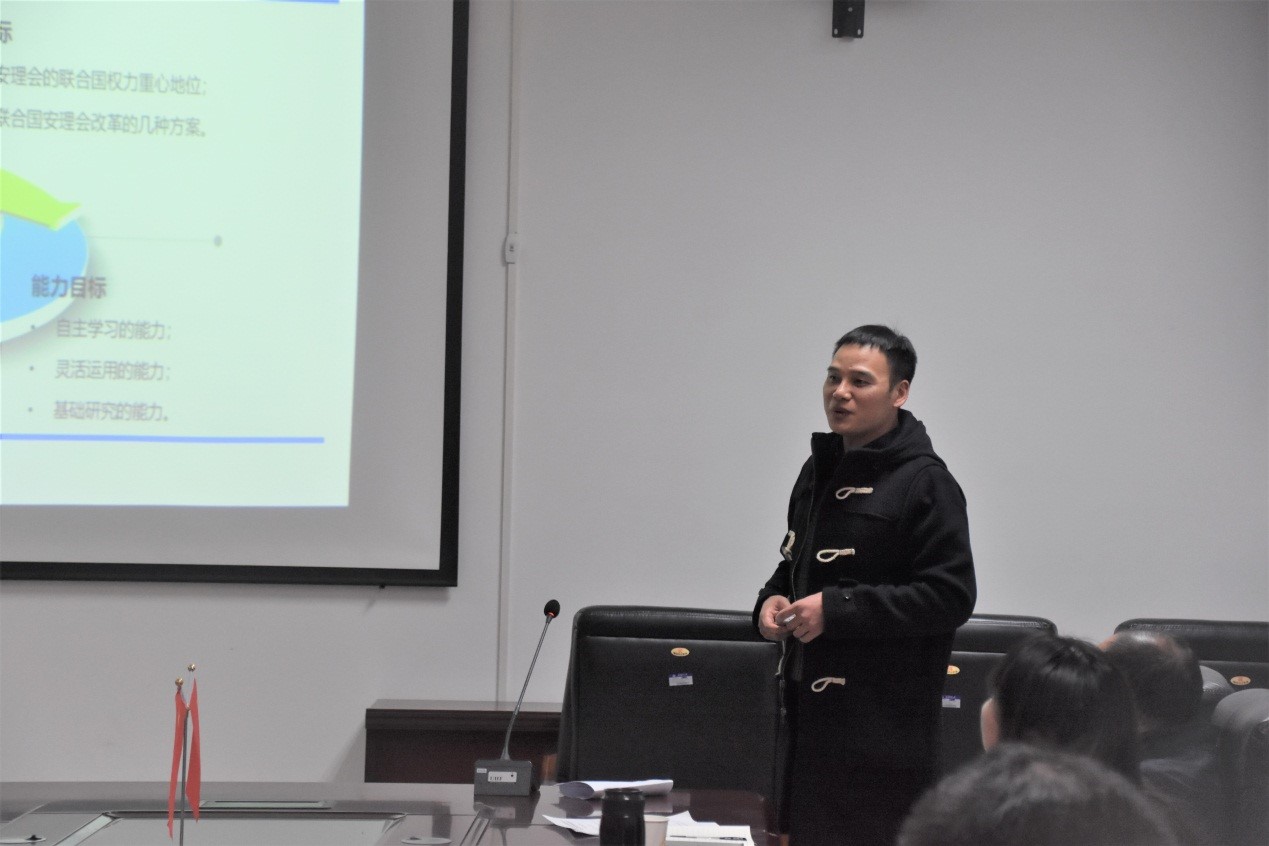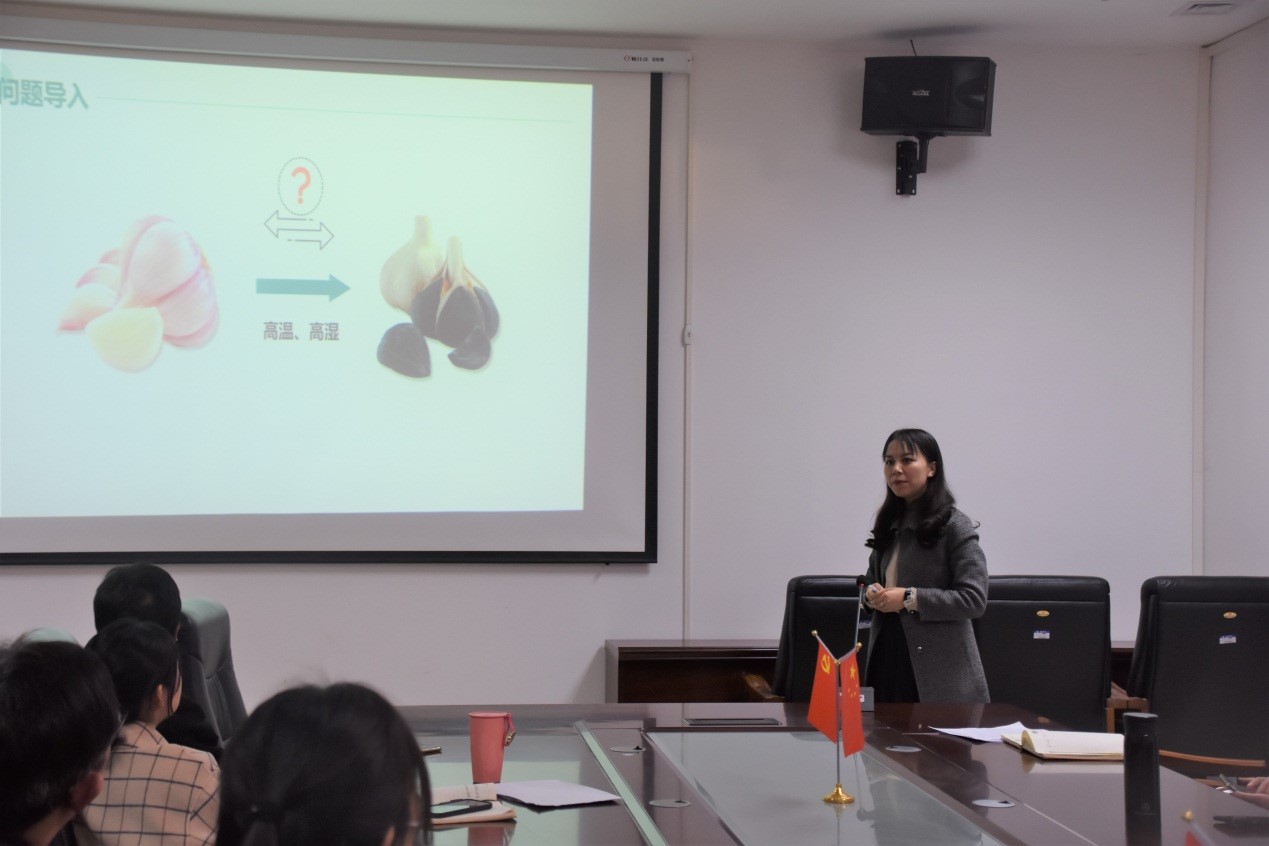 随后,雷萌萌以《食品化学》课程的课堂教学为例,运用创新性的教学手段与方法,为老师们进行了深入浅出的教学展示。张帅梁则以《安理会入常的中日较量》为主题,融入思政元素,从参加教学比赛的流程和心得体会等方面与老师们进行了深入的交流与互动。老师们都积极融入,反映热烈,受益良多。