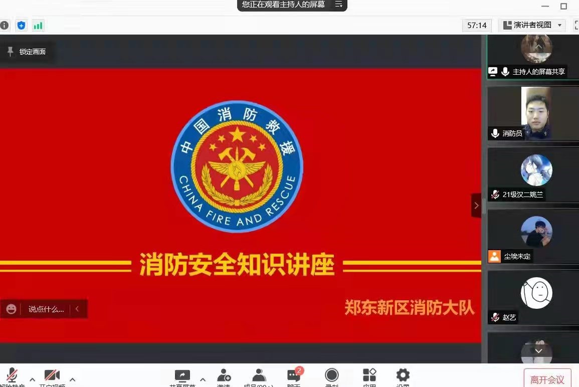 通过线上方式举办了以“学习消防知识 共享平安校园”为主题的消防知识宣传活动。郑东新区消防大队消防员代表、21级辅导员赵梦闪出席活动,91porn