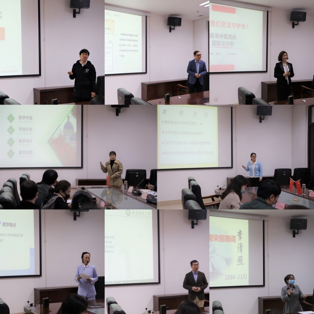 此次比赛分为说课和模拟教学两个环节。比赛过程中,各位参赛教师分别从教学目标、教学理念、课堂教学设计、教学内容创新等方面展开了精彩的课堂教学展示。他们注重把课堂思政以及新的教学技术、教学方法、教学思维融入课堂教学,充分体现了青年教师的知识积累和思维创新。