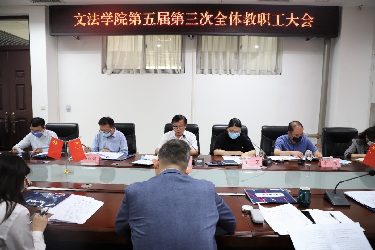 通过线上线下联动、主会场与分会场结合的方式在教学楼A310会议室召开学院第五届教职工大会第三次会议。全体教师参加会议,会议由院党委副书记余果主持。