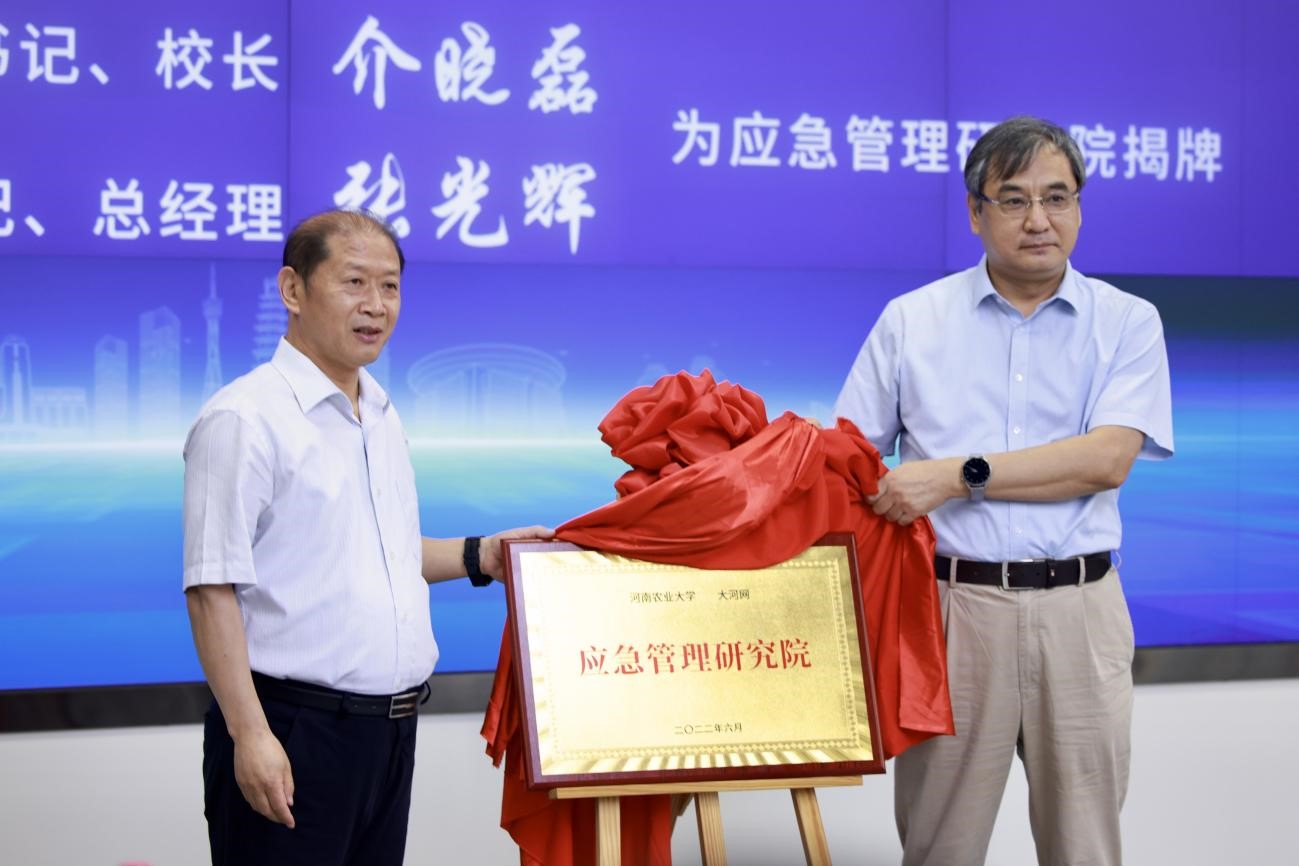 校长介晓磊、河南日报社总经理张光辉为应急管理研究院揭牌