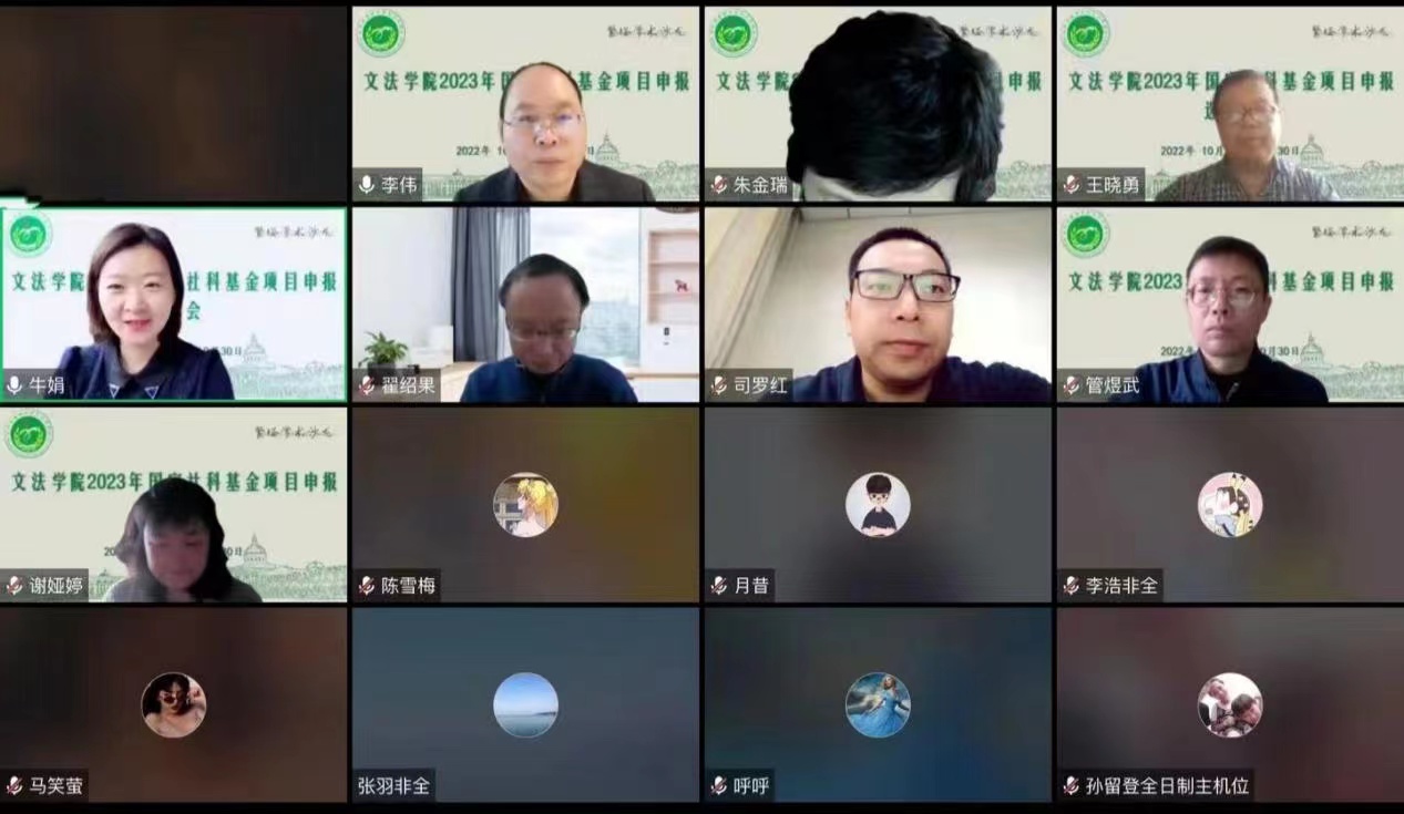 通过线上方式精心组织召开了2023年国家社科基金项目申报选题会。会议特邀河南财经政法大学副校长朱金瑞教授、西北大学公共管理学院副院长翟绍果教授、郑州大学文学院司罗红教授、海南大学法学院谭波教授作为点评嘉宾。91porn