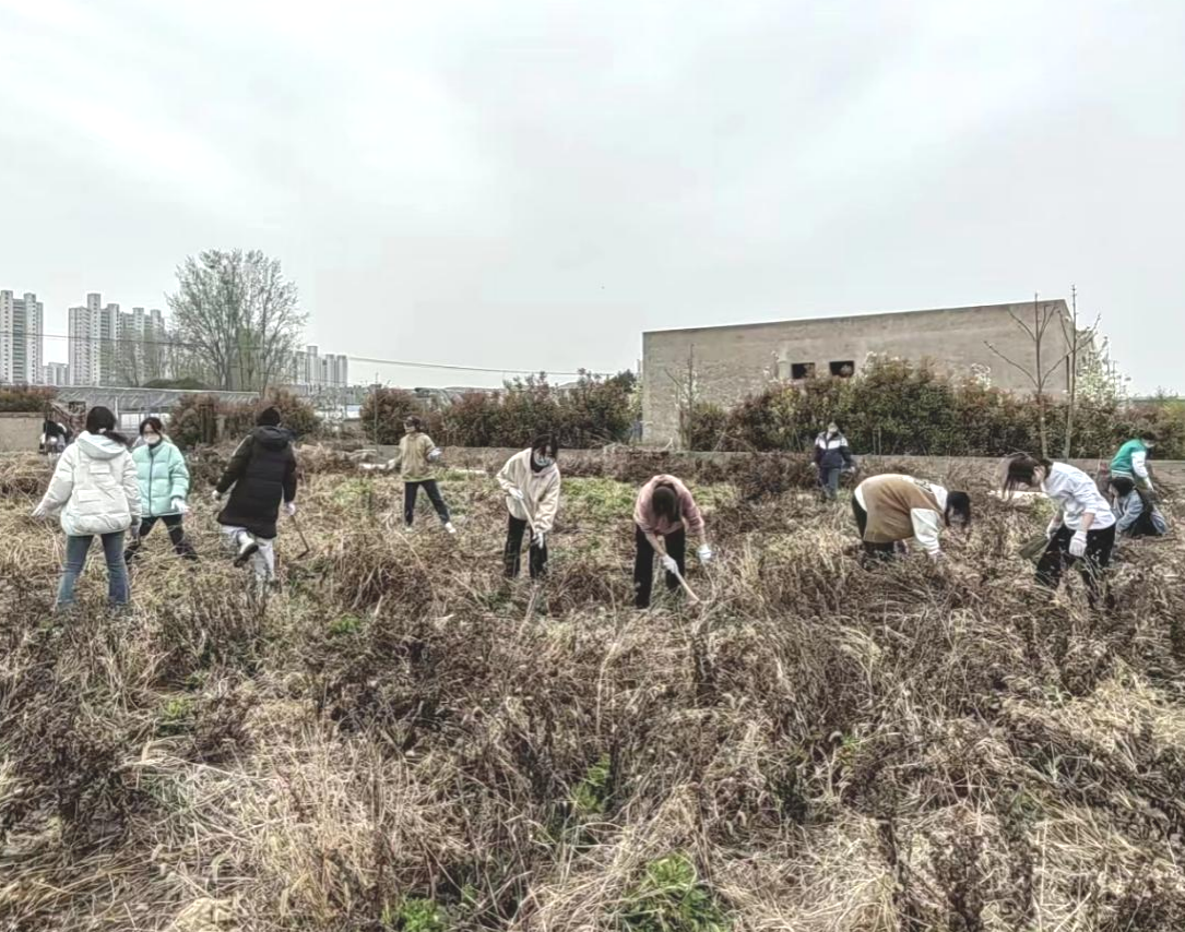 实训基地的基本情况,讲解如何更好地使用农事工具、如何除草及撒种等内容。随后,学生领取除草工具后分工协作,纷纷走进杂草丛,认真地清理试验田中的杂草。在教师指导下,整个实践过程忙而不乱,井然有序,学生们个个热情高涨、享受着劳动带来的欢乐。学生在动手进行除草实践的过程中,齐心协力配合默契,虽然感到劳累,却也体会到农业劳动人员的不易,认识到劳动的重要性。