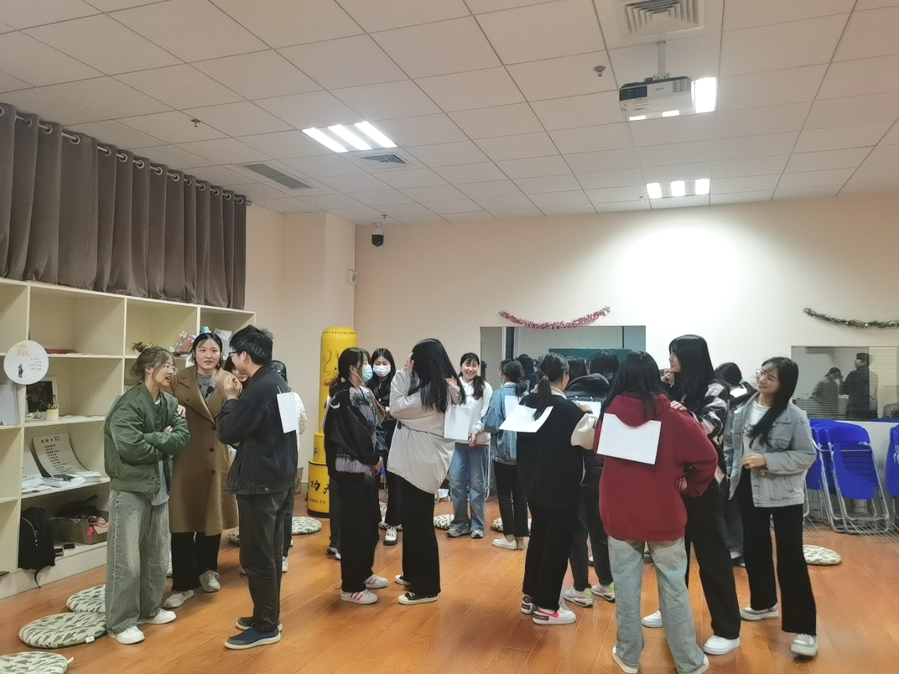 本期活动以“态度”为主题,共分为热身活动、破冰游戏与活动回顾三个环节。在热身活动中,趣味游戏“大风吹”活跃了整体氛围,为后续活动的顺利开展奠定了基础。第二个环节由“进化论”和“找自己”两个游戏组成,游戏结束后,赵韶光逐步揭示了游戏设计的深层意蕴,并结合身边的真实事例,勉励大家要坚持不懈,明晰自己是什么样的人,进而确定想成为什么样的人,在挑战中不断提升自身的能力。最后,在赵韶光的带领下,学生对活动进行了回顾与反思,并分享自己的心得。