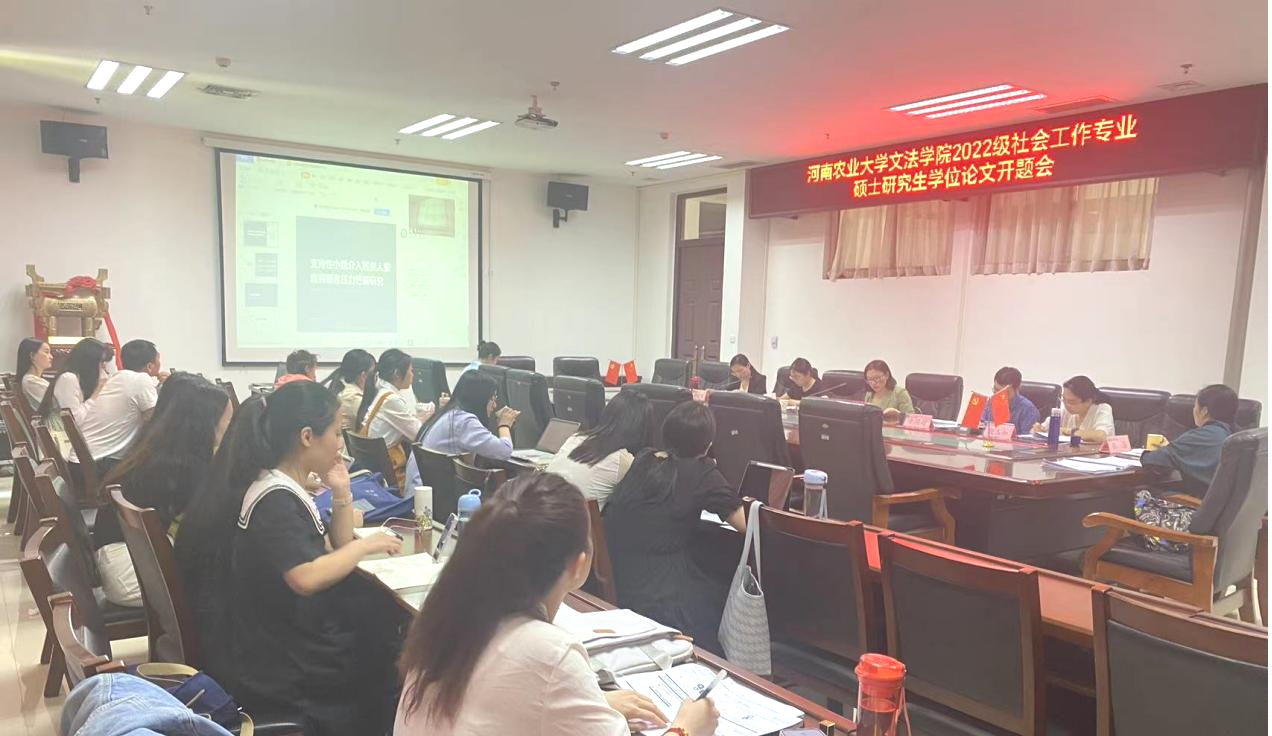 社会学系于繁塔楼A310举行2022级社会工作专业硕士研究生学位论文开题会。本次开题答辩委员会成员由华中科技大学社会学院教授、博士生导师任敏、副院长李伟、社会学系研究生导师组成。23名硕士研究生采取了线上线下相结合的形式展开论文开题汇报。