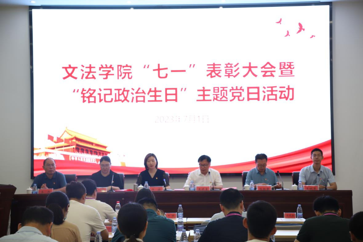于焦裕禄干部学院开展“七一”彰大会暨“铭记政治生日”主题党日活动。学院党委委员、各教工党支部书记、受表彰的先进代表、过政治生日的党员及学院全体教职工参加会议,会议由学院院长王晓勇主持。