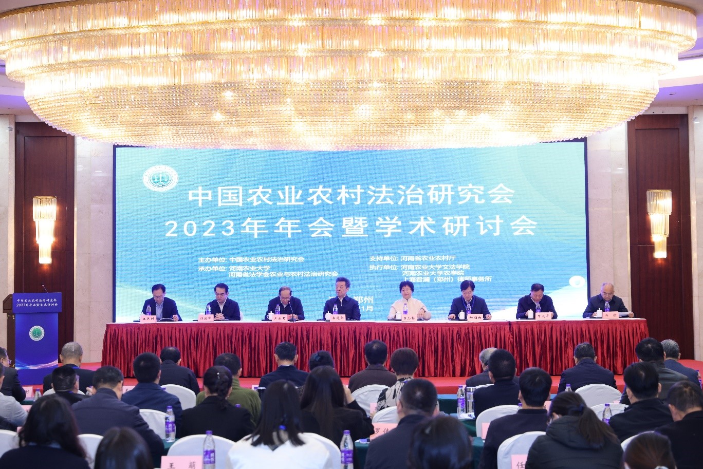 、河南农业大学农学院和上海君澜(郑州)律师事务所联合执行。全国人大常委会委员、环境与资源保护委员会副主任委员、农工党中央副主席、中国法学会副会长吕忠梅,第十三届全国政协委员、农业农村部原党组成员、中国农业农村法治研究会会长宋建朝,中国农业农村法治研究会副会长、农业农村部法规司司长王乐君,河南省委农办主任、省农业农村厅党组书记、厅长孙巍峰,河南省人大常委会农村工作委员会主任、河南省法学会农业与农村法治研究会会长申延平,河南农业大学党委副书记游舸,以及部分省、自治区农业农村部门法规处、执法监督处的负责同志,中国农业农村法治研究会会员单位代表、专家学者等嘉宾出席开幕式,河南农业大学社会科学处、农学院、91porn