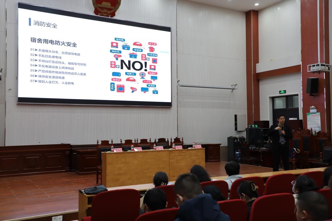 学院团委书记王鹏举以“安全关系你我,共建文明校园”为题展开安全教育专题讲解。他结合真实案例从人身财产安全、交通安全、网络安全以及消防安全四个方面向同学们介绍相关方面规定,增强研究生安全防范意识和预防安全事故的能力;教育引导研究生认真学习和遵守宿舍、实验室等重点场所相关安全管理规定。让学生明确认识到校园安全的重要性,提高自我保护和自我防范的意识。