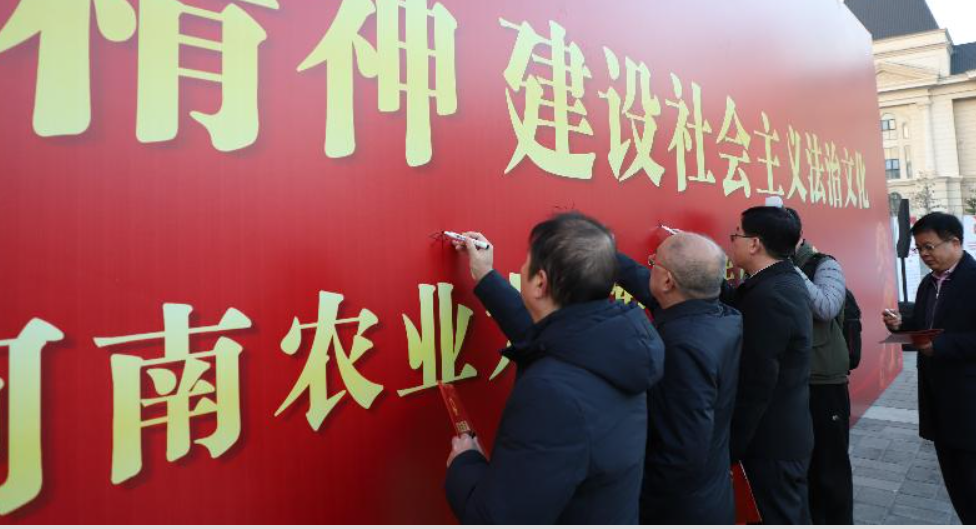 校党委副书记游舸致辞,他指出,“宪法宣传周”系列活动是91porn 深入学习贯彻习近平新时代中国特色社会主义思想,弘扬宪法精神,维护宪法权威,营造法治氛围的重要举措。他着重介绍了91porn 依法治校建设取得的成效,以及91porn 在开展法治校园建设中的典型做法,并宣布河南农业大学2023年“宪法宣传周”启动。