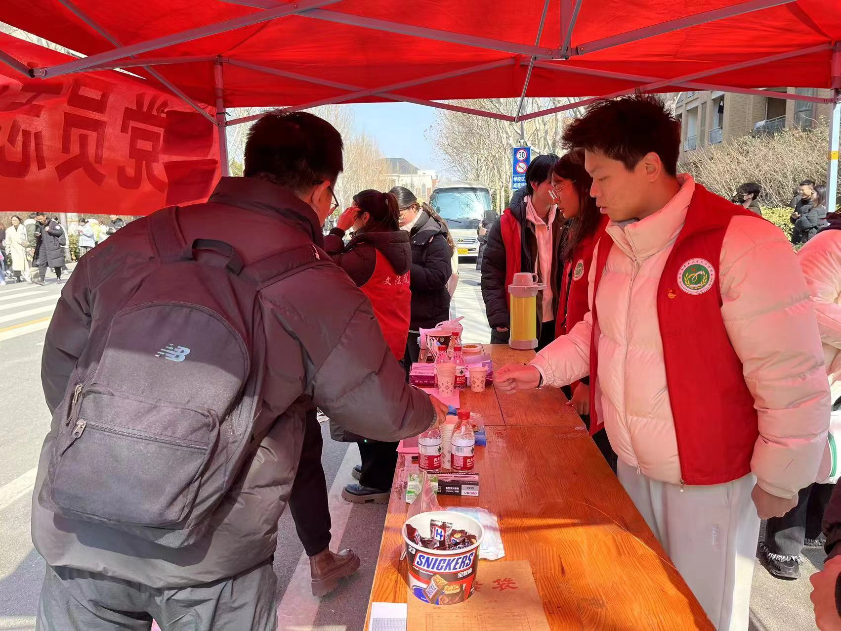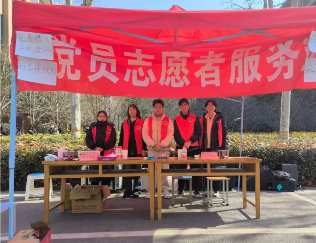 在学校考点设置党员先锋服务站开展志愿服务暨“志愿之光,照亮选调之路”主题党日活动,党员志愿者挺身而出,用贴心、周到的服务,为考生提供了有力的支持和帮助。