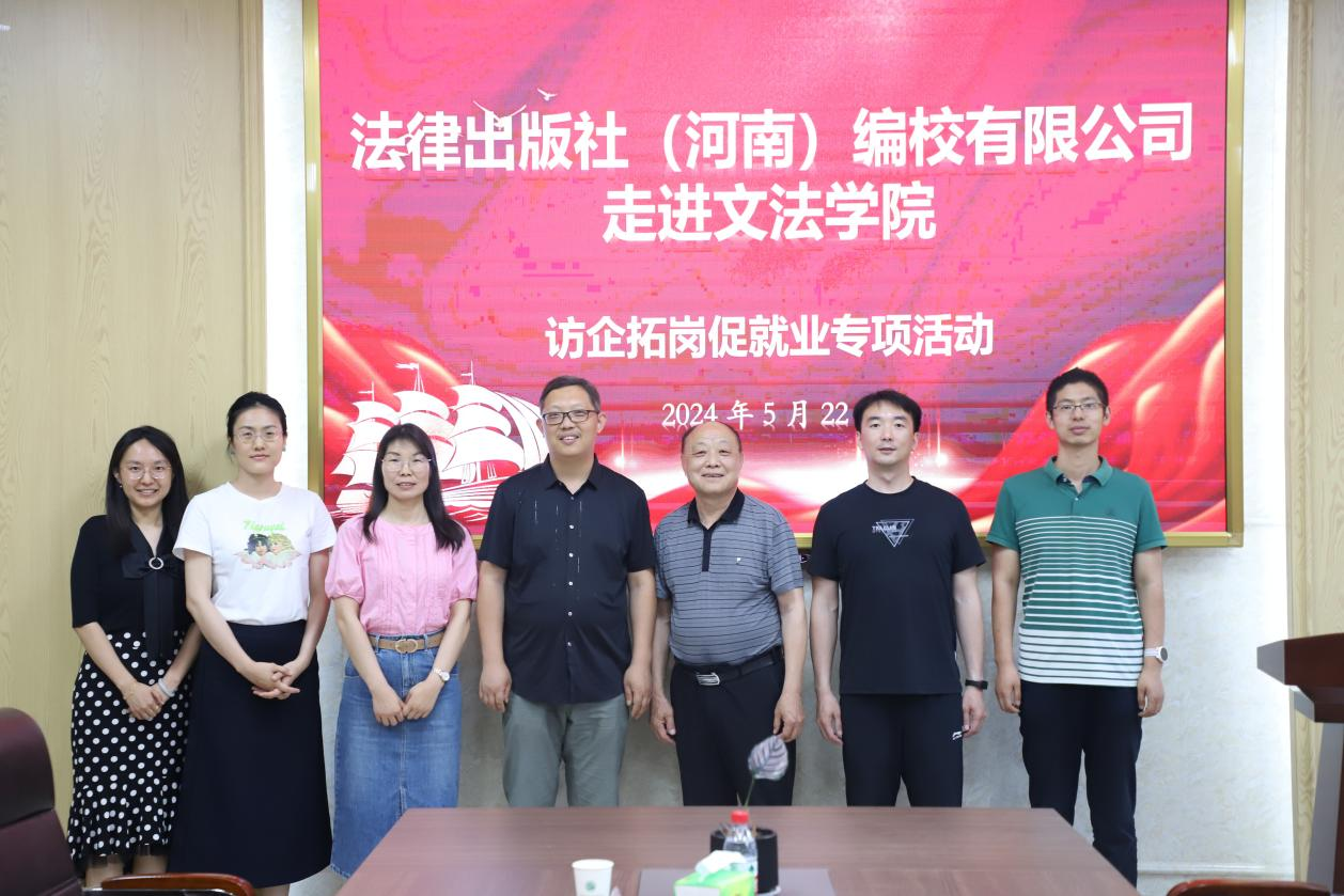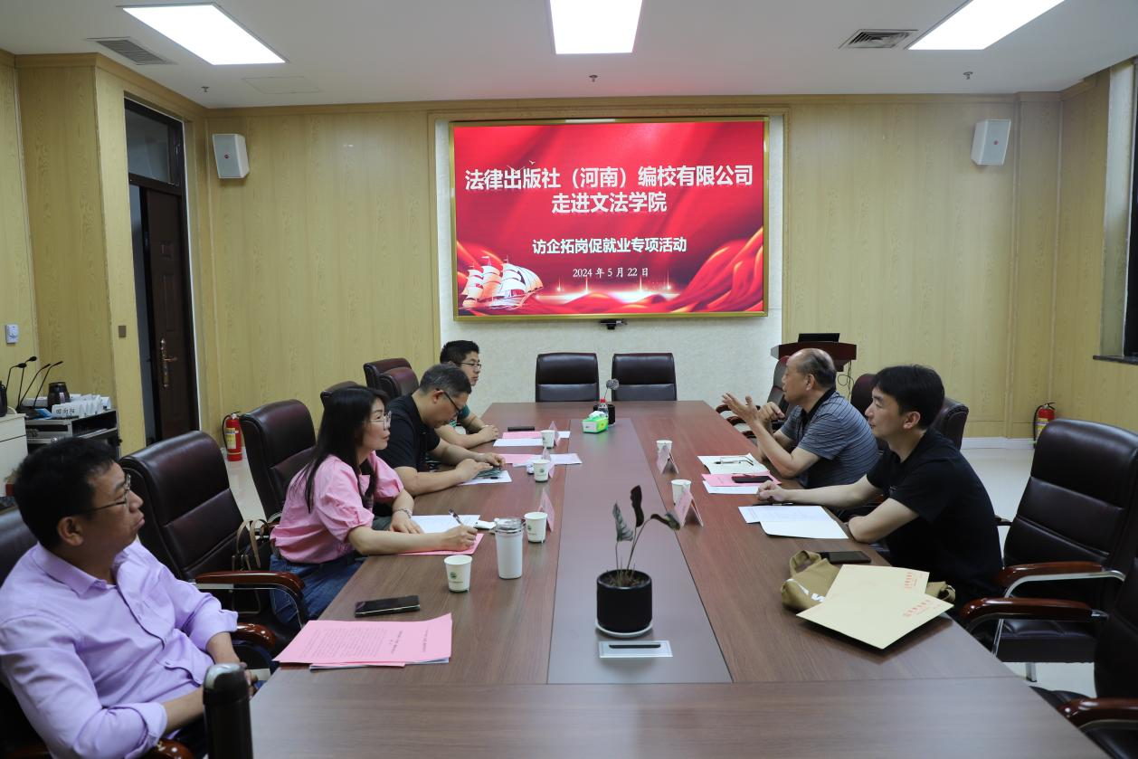 邀请法律出版社(河南)编校有限公司进校园开展交流活动。院法律系主任韩宁、副主任赵菊敏、院团委书记王鹏举,法律出版社(河南)编校有限公司行政管理部主任宋合希、行政管理职员苗楠出席活动。