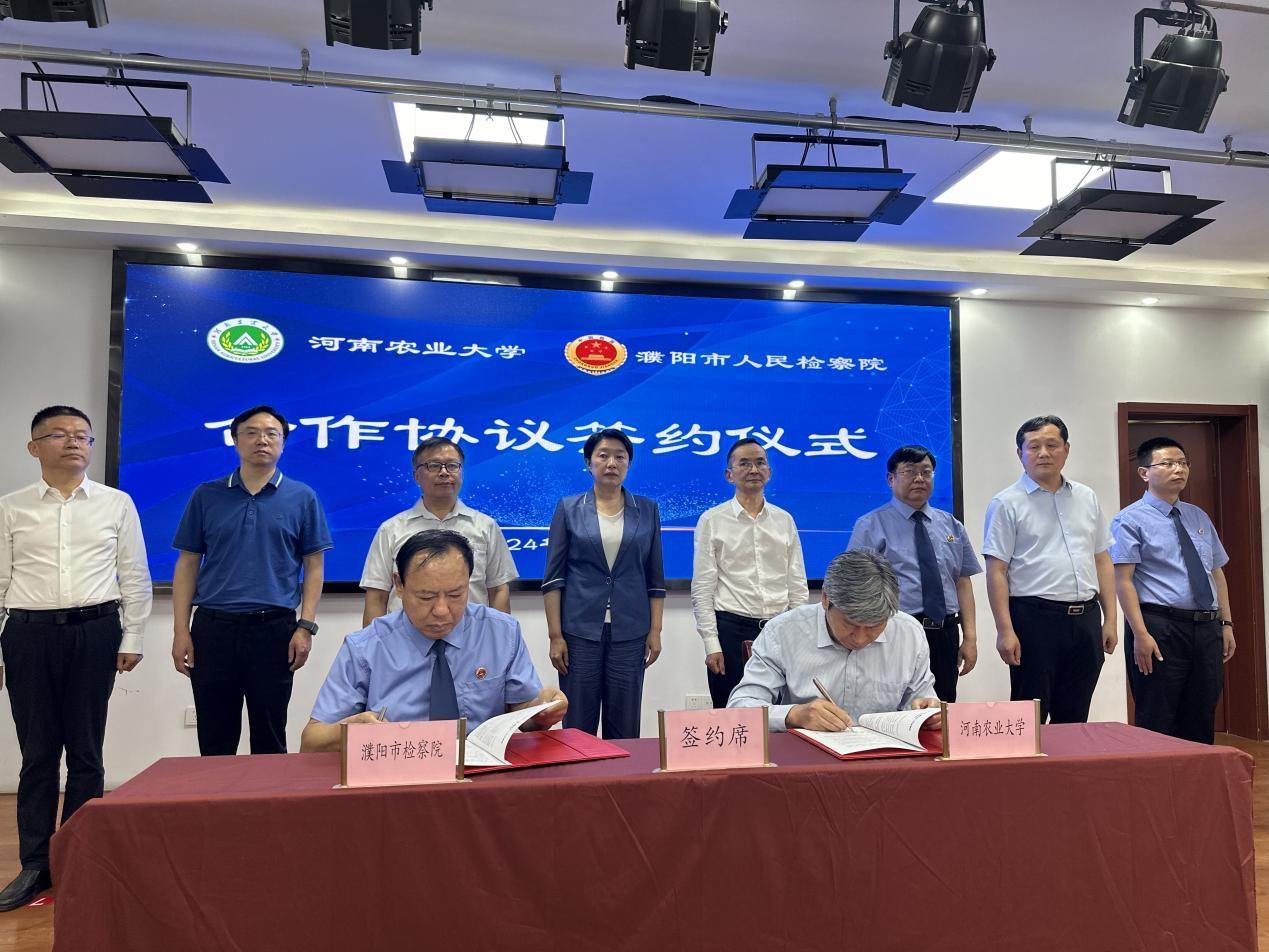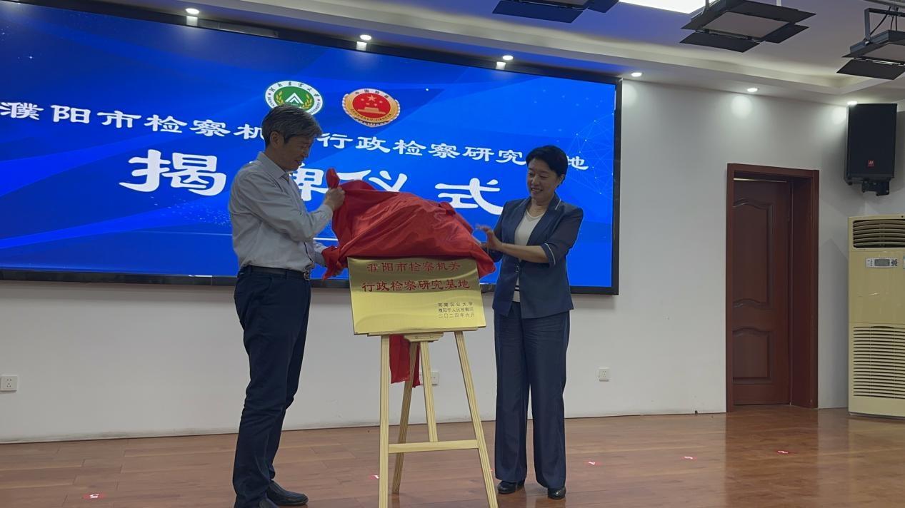 随后,杨喜田裴大伟签订了河南农业大学与濮阳市人民检察院合作协议。杨喜田和李莉荣共同为行政检察研究基地揭牌。