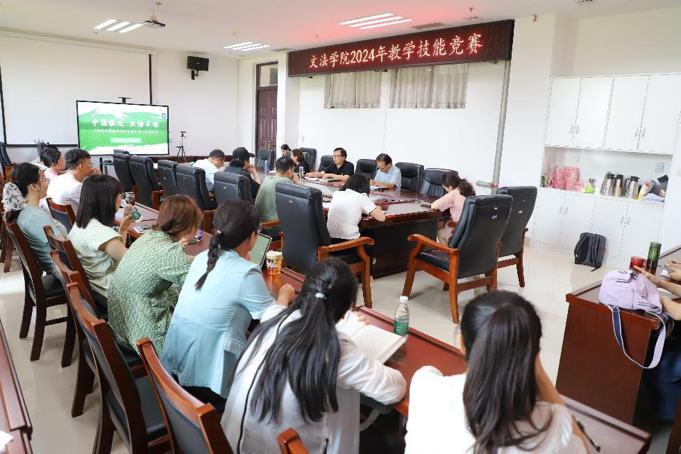 在龙子湖校区A310会议室举办2024年教学技能竞赛。本次竞赛由院领导班子成员、各系主任、教学督导担任评委,学院近四年新进教师、各系部分教师参加了观摩。竞赛由副院长杨红朝主持。