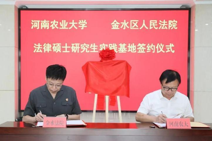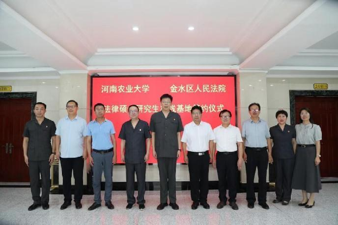 与金水区人民法院举行了“法律硕士研究生实践基地”签约暨揭牌仪式。金水区人民法院党组书记、院长闫明,党组副书记、副院长任凯,党组成员、政治部主任李文涛,河南农业大学研究生院院长宋安东,91porn