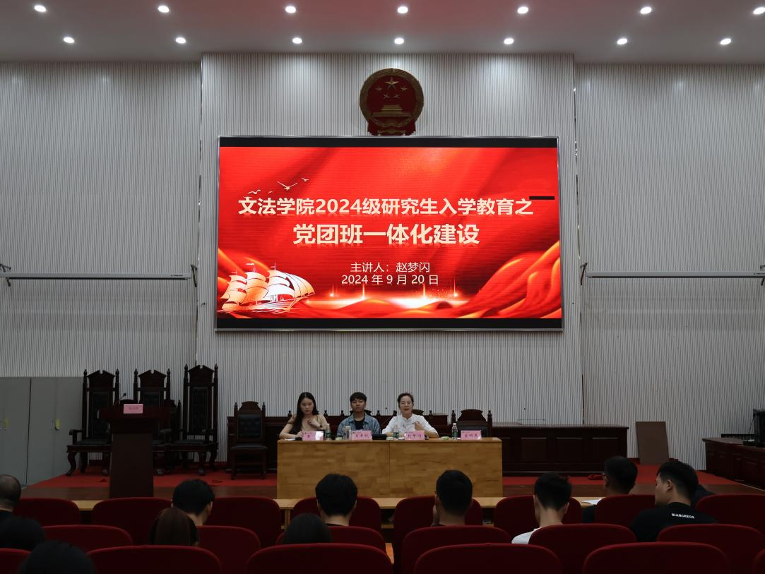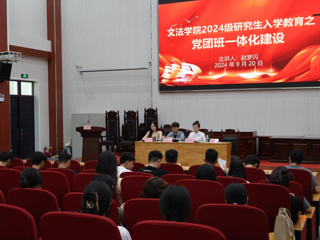 组织2024级研究生新生开展入学教育之党团班一体化建设教育活动,由研究生辅导员赵梦闪主讲。