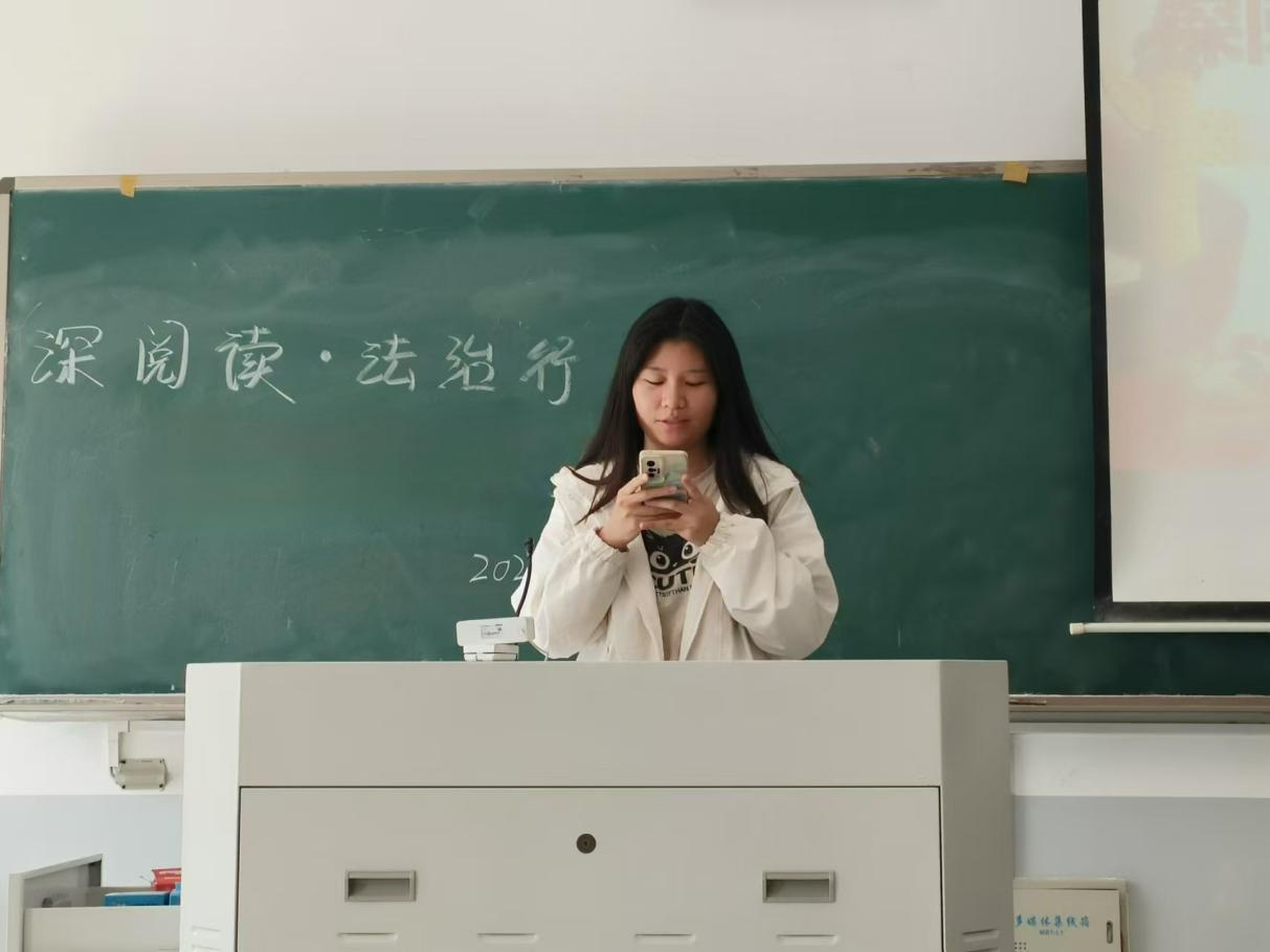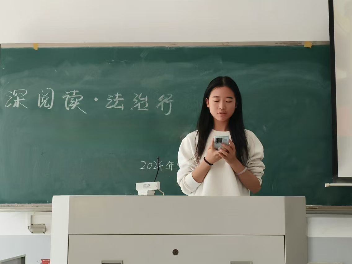 本科生党支部于龙子湖校区教学楼E107开展了以“深阅读·法治行:习近平法治思想领航”为主题的第二次党课活动。